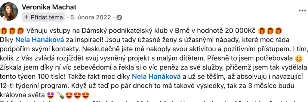 Teď můžeš okopírovat mých 9+ let zkušeností, které přinesly mně i mým klientkám statisícové dosahy na sítích a stovky zákazníků.